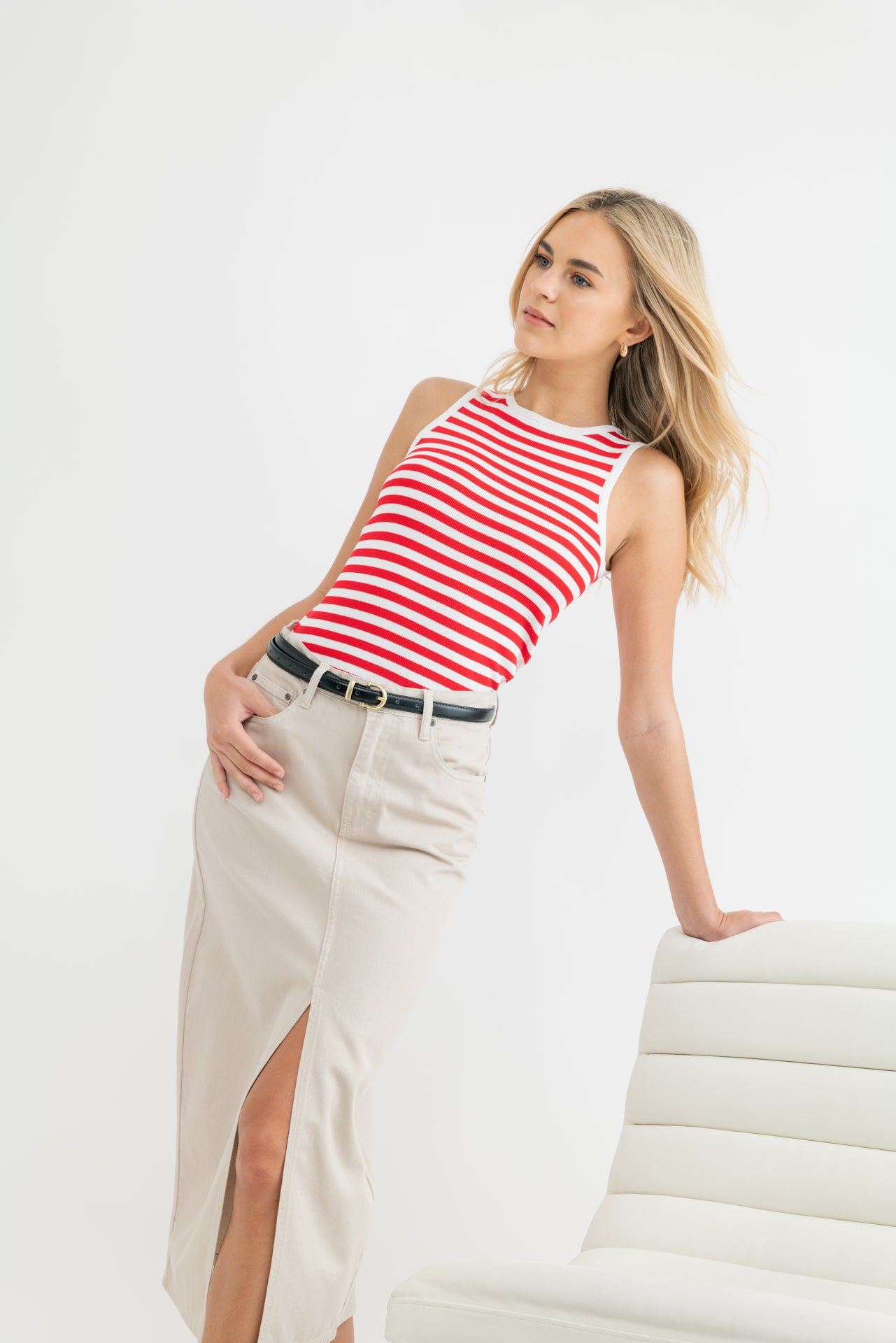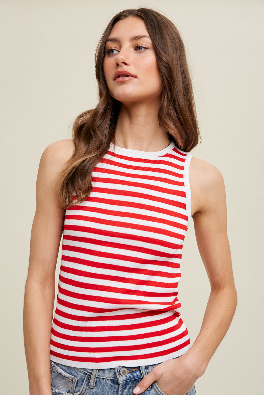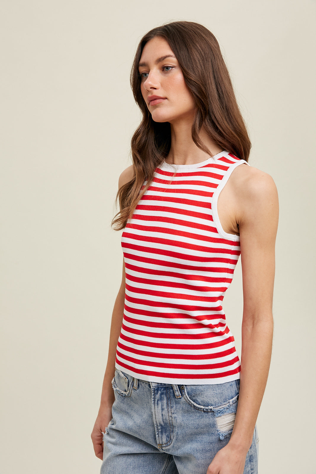 *MULTI-STRIPED SWEATER TANK - WHITE/RED